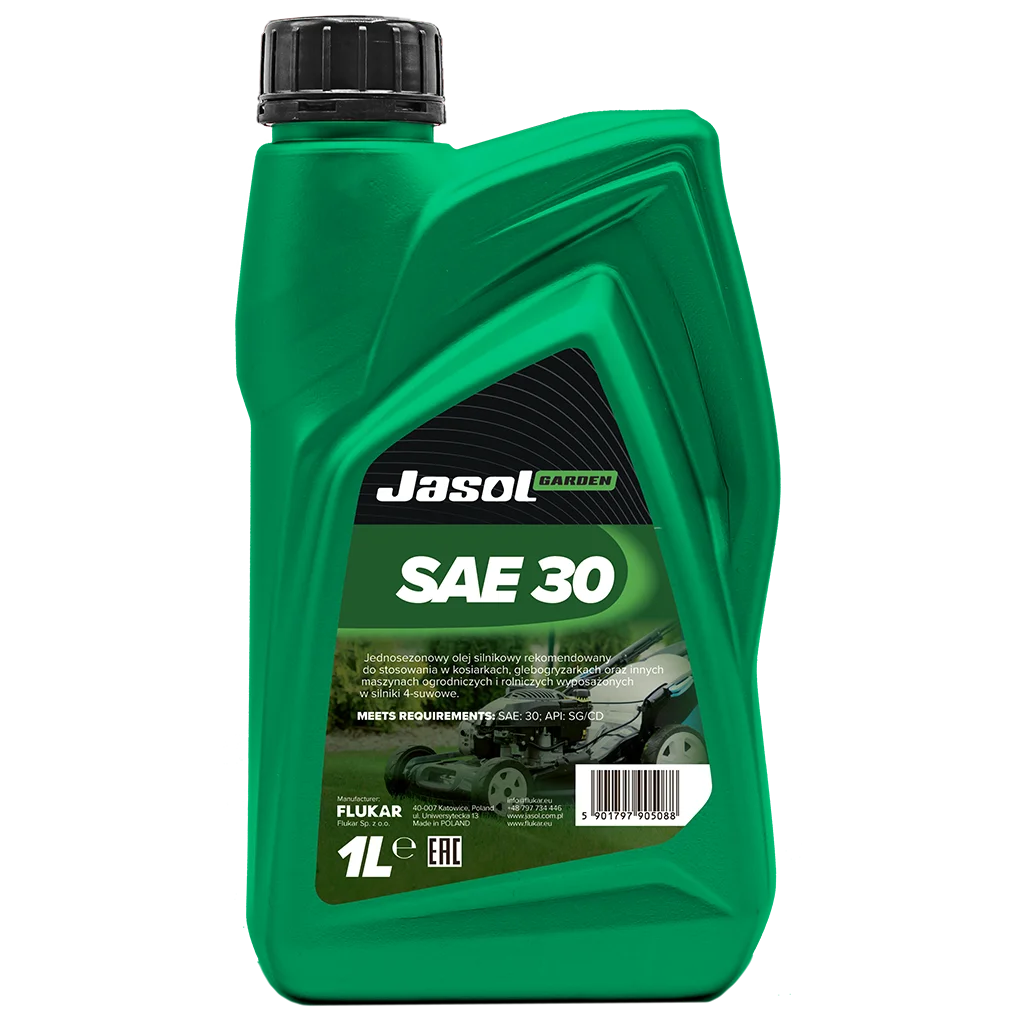 Jasol SAE 30 wysokiej jako艣ci olej o technologii specjalnie opracowanej dla czterosuwowych silnik贸w urz膮dze艅 ogrodniczych takich jak kosiarki, glebogryzarki, itp. Jasol Garden Oil SAE 30 to olej jednosezonowy, przeznaczony jest do stosowania w okresie letnim.