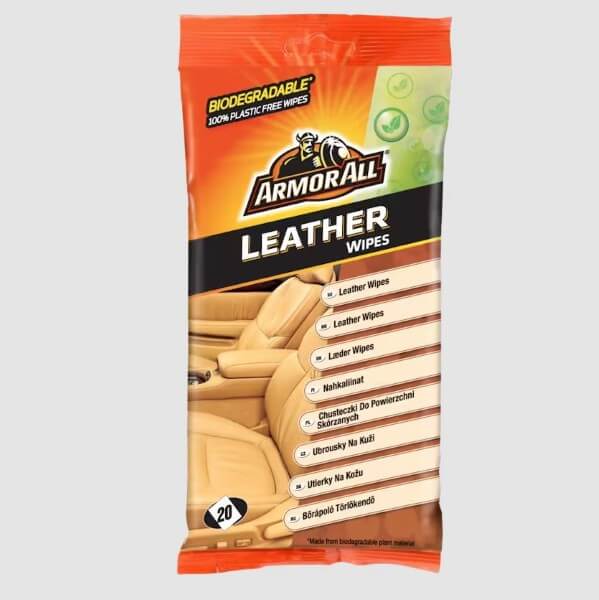 Chusteczki do powierzchni skórzanych Armor All® zabezpieczają skórzane elementy i sprawiają, że skóra zachowuje estetyczny wygląd na dłużej. Biodegradowalne chusteczki zostały specjalnie opracowane pod kątem bezpiecznego i skutecznego usuwania zabrudzeń, a pszczeli wosk zapewnia ochronę przed plamami. Są dostępne w miękkim opakowaniu do czyszczenia, gdy jesteś w drodze oraz w tubkach do przechowywania w schowku, bagażniku lub w garażu.