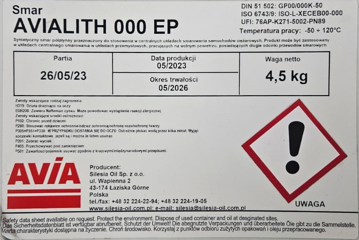 • normy i specyfikacje: DIN 51502: GP00/000K-50; ISO: L-XECEB00/000