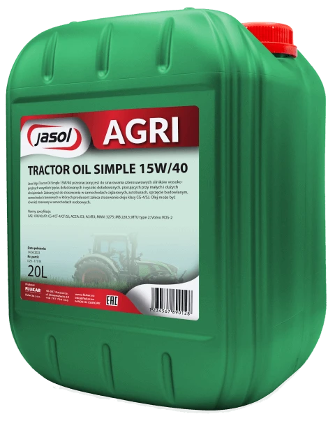 Jasol Agri Tractor Oil Simple 15W/40 przeznaczony jest do smarowania czterosuwowych silników wysokoprężnych wszystkich typów, doładowanych i wysoko doładowanych, pracujących przy małych i dużych obciążeniach.