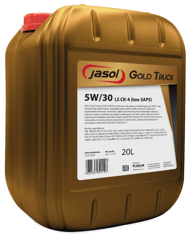 Jasol Gold Truck LS CK-4 5W/30 syntetyczny olej oparty o technologię „Low SAPS” z niską zawartością siarki, fosforu. Zaprojektowany został z myślą o idealnym połączeniu doskonałych własności smarnych, stabilności termicznej oraz doskonałych własności radzenia sobie z osadami przy długich przebiegach oraz technologii dostosowanej do najnowszych układów typu filtry cząstek stałych DPF, układy SCR czy EGR.