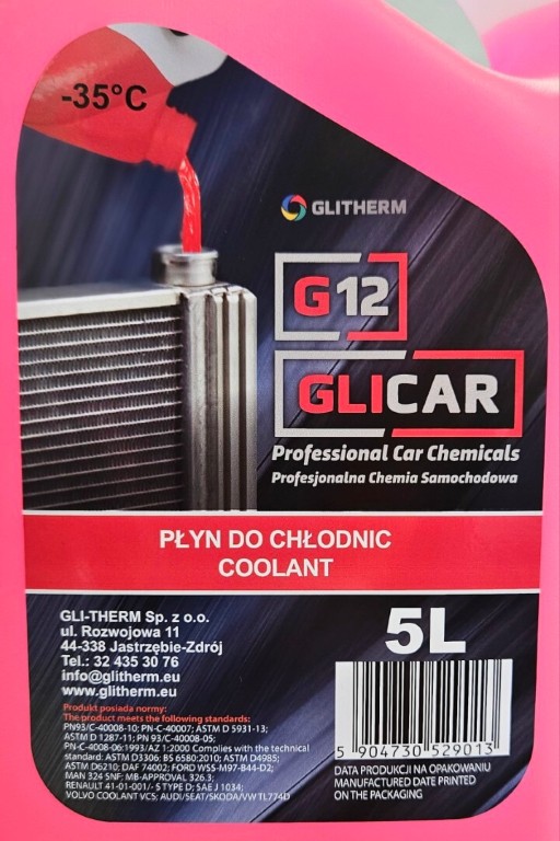 Czerwony płyn G12 do stosowania w układach chłodniczych wszystkich typów silników spalinowych.