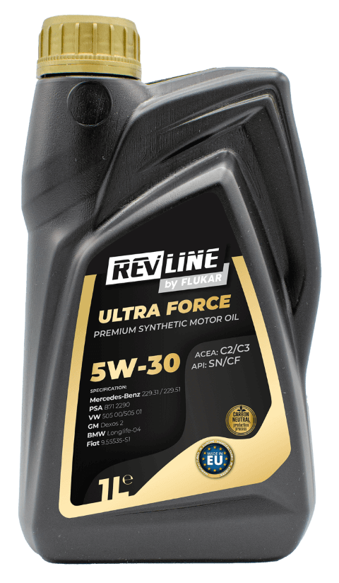 Revline Ultra Force C3 5W-30 to wysokiej jako艣ci syntetyczny olej silnikowy przeznaczony do stosowania w nowoczesnych, niskoemisyjnych silnikach benzynowych i Diesla w samochodach osobowych, terenowych oraz lekkich dostawczych.