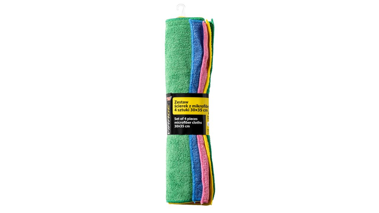 Moje Auto Virage Zestaw 4 sztuk ściereczek z mikrofibry o wymiarach 30cm x 35cm. Dzięki swoim właściwościom sprawdzi się przy każdych porządkach, zarówno tych w domu, biurze, jak i samochodzie.