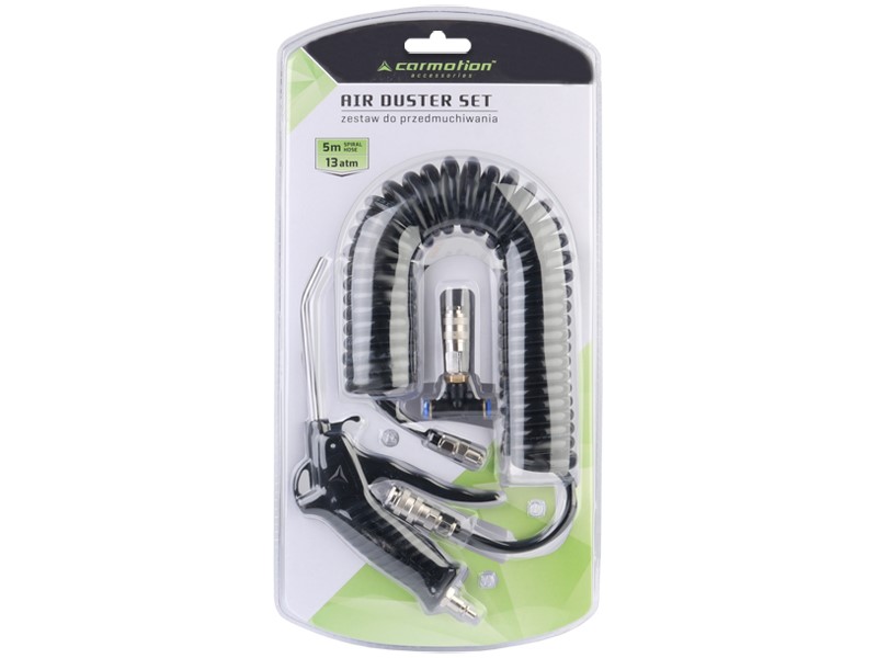 Profesjonalny zestaw do przedmuchiwania. Zapewnia szybkie i skuteczne oczyszczanie kabiny oraz trudno dostępnych miejsc z kurzu, pyłu i drobnych zabrudzeń. Maksymalne ciśnienie robocze - 13atm.