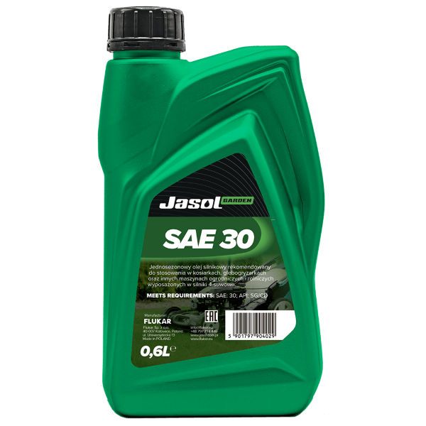 Jasol SAE 30 wysokiej jakości olej o technologii specjalnie opracowanej dla czterosuwowych silników urządzeń ogrodniczych takich jak kosiarki, glebogryzarki, itp. Jasol Garden Oil SAE 30 to olej jednosezonowy, przeznaczony jest do stosowania w okresie letnim.