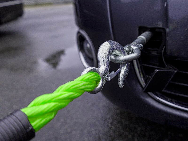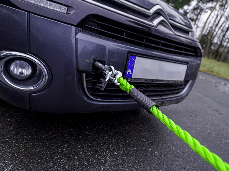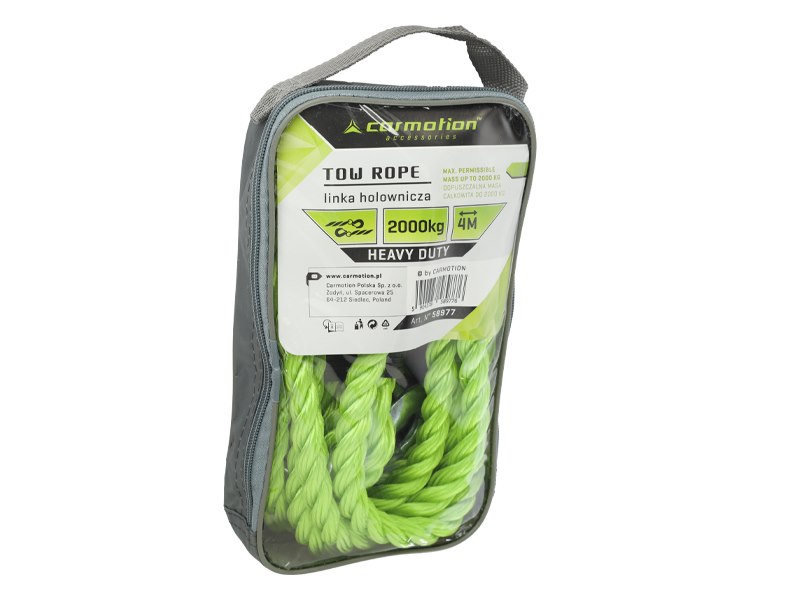 Mocna pleciona linka holownicza, o długości 4m, została zakończnona hakami z zabezpieczeniem przed wypięciem.