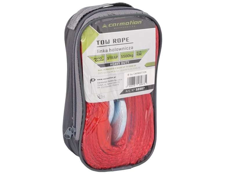 Wytrzymała lina holownicza (pas) o długości 4m i maksymalnym udźwigu pojazdów DMC do 5500kg.