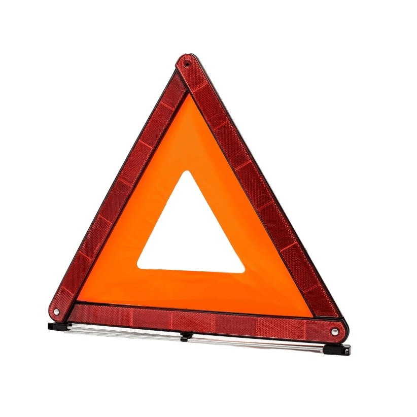 Obowiązkowy w każdym samochodzie! Odblaskowy trójkąt ustawiany na drodze w celu uniknięcia kolizji za pojazdem mogącym utrudniać ruch pasem, na którym się zatrzymał lub uległ awarii.
