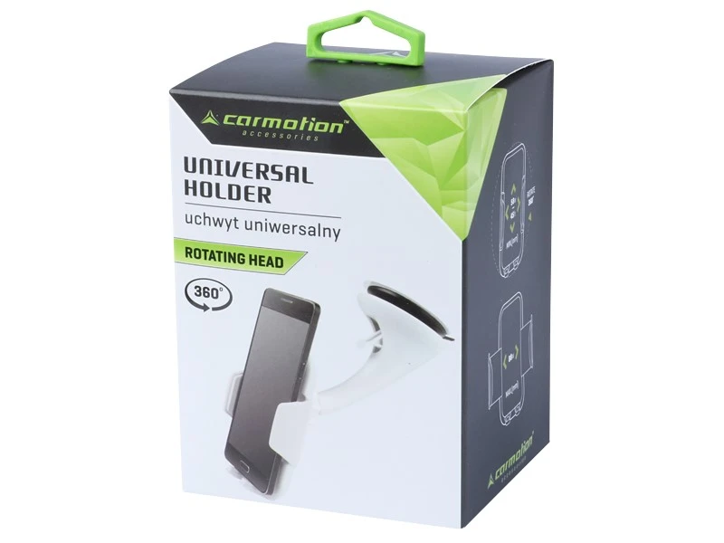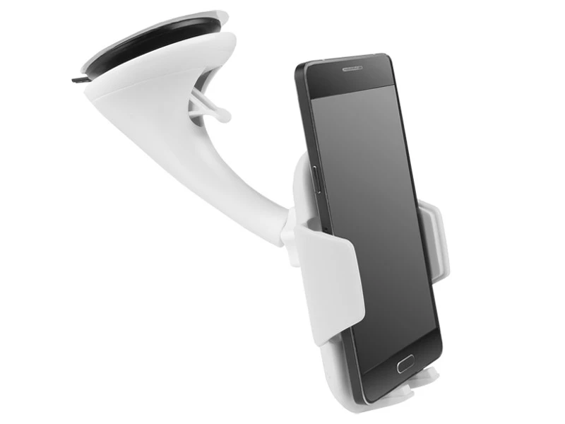 Odpowiedni dla większości smartfonów. Należy złożyć uchwyt w całość. Usunąć folię ochronną z przyssawki i zamocować uchwyt na szybie lub innej gładkiej powierzchni. Po kilkukrotnym montażu i demontażu przyssawka może stracić swoje właściwości mocujące - aby wyeliminować ten problem należy umyć ją w ciepłej wodzie.