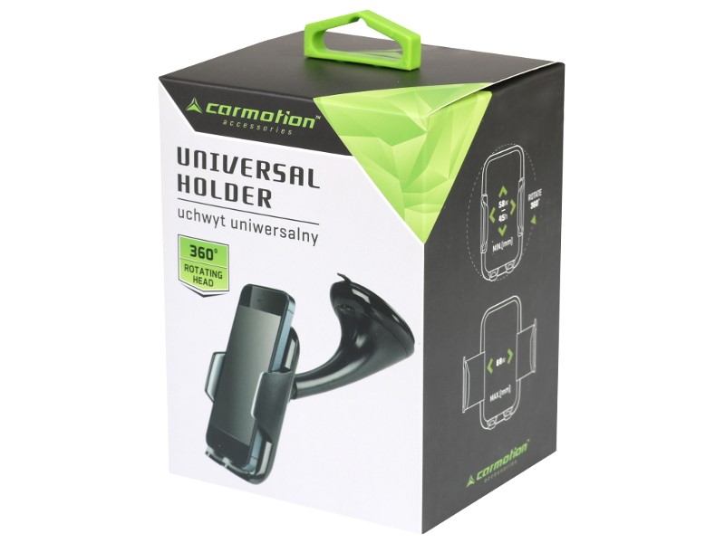Odpowiedni dla większości smartfonów. Należy złożyć uchwyt w całość. Usunąć folię ochronną z przyssawki i zamocować uchwyt na szybie lub innej gładkiej powierzchni. Po kilkukrotnym montażu i demontażu przyssawka może stracić swoje właściwości mocujące - aby wyeliminować ten problem należy umyć ją w ciepłej wodzie.